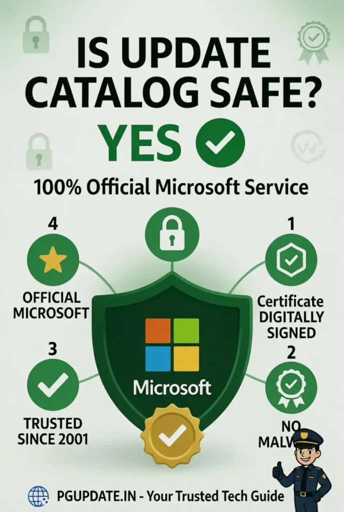A common question: “Is the Microsoft Update Catalog safe?” The answer is definitively yes.